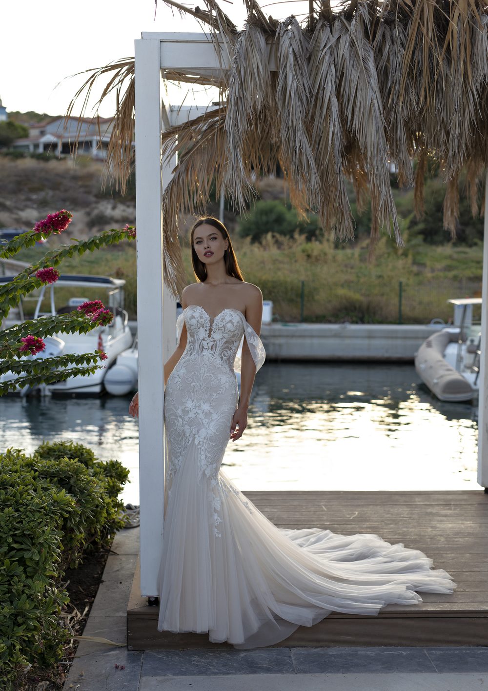 Zarte Blumenornamente in außergewöhnlichen Farbkompositionen und in Verbindung mit leichten Tüllstoffen in zartem Pastell zaubern eine besondere Leichtigkeit und Fröhlichkeit in die aktuelle Brautmode und vermitteln so - mit noch nicht dagewesenen Farbeffekten -umgehend ein entspanntes frühlingshaftes und sommerliches Gefühl.